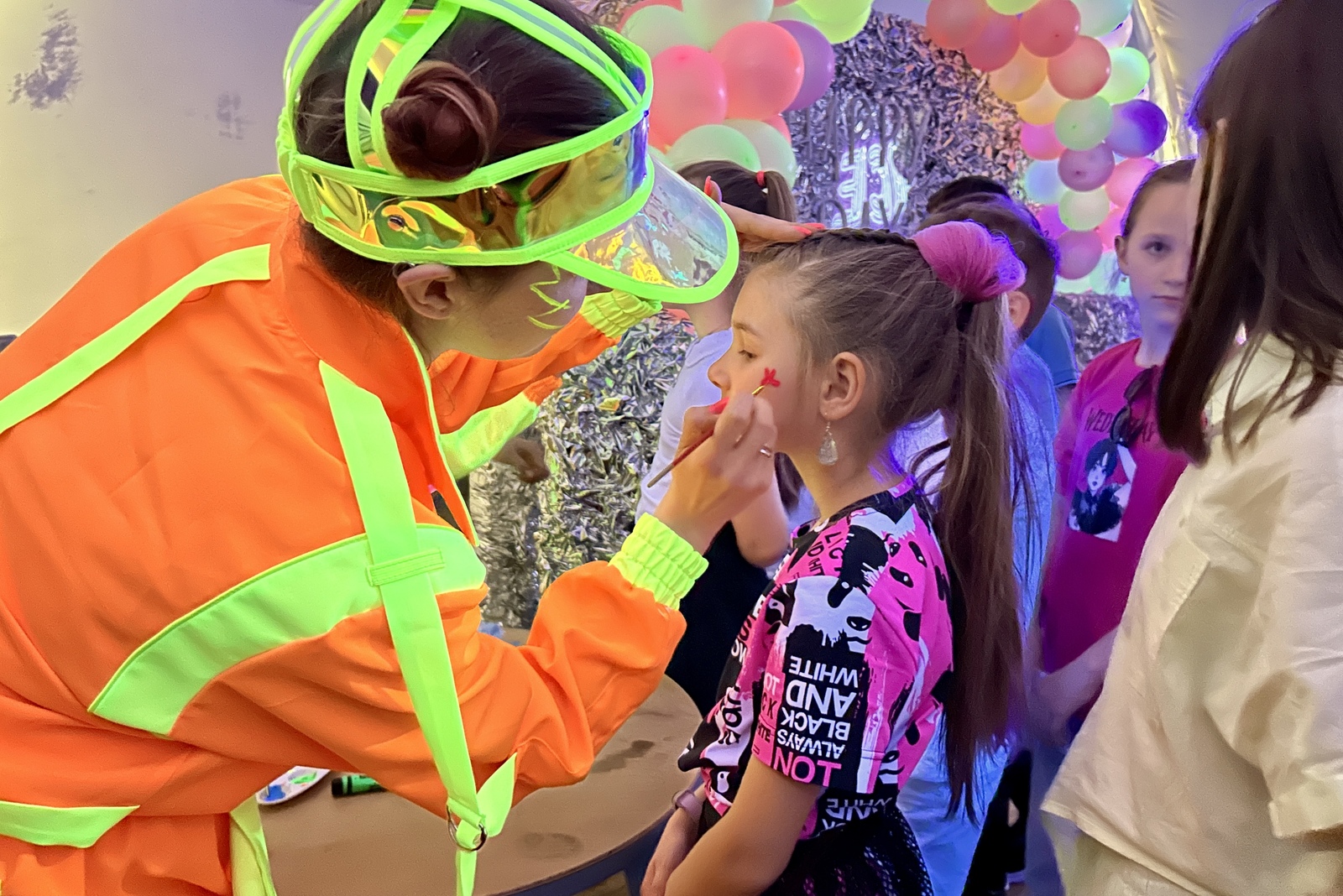 Хочется добавить в жизнь ярких красок и круто провести праздник с друзьями, надоели детские аниматоры? Тогда этот пакет для вас! Яркий ведущий, аквагрим/макияж специальными светящимися красками, улетные челленджи и конкурсы от ведущего, дискотека с неоновым серпантином, отсутствие дневного света и специальное неоновое освещение!