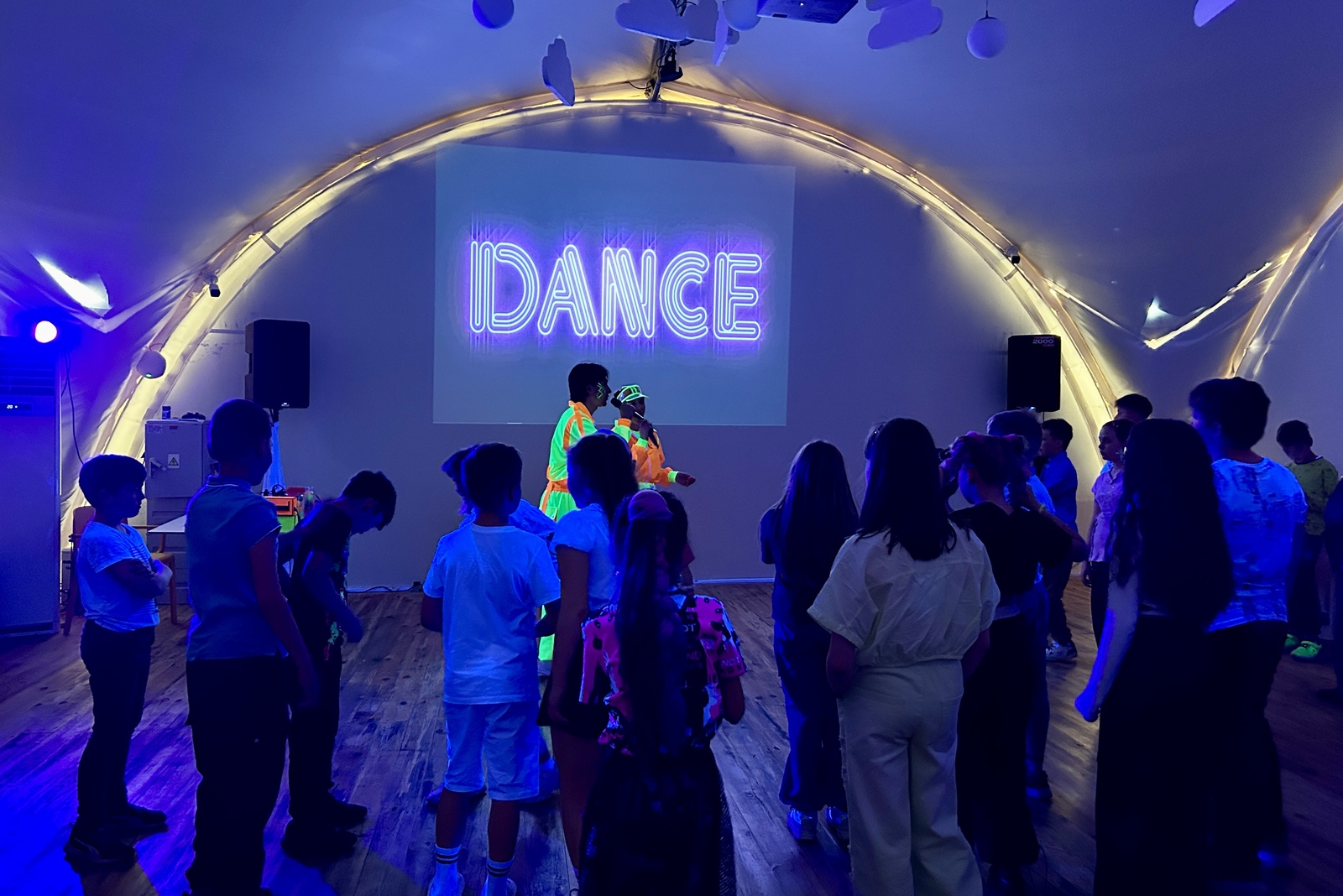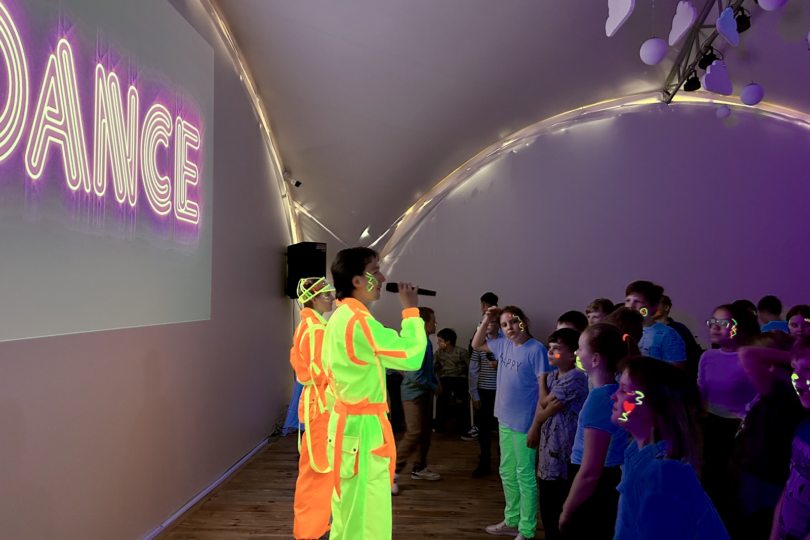 Музыкальное сопровождение праздника и светомузыка, специальное ультрафиолетовое освещение