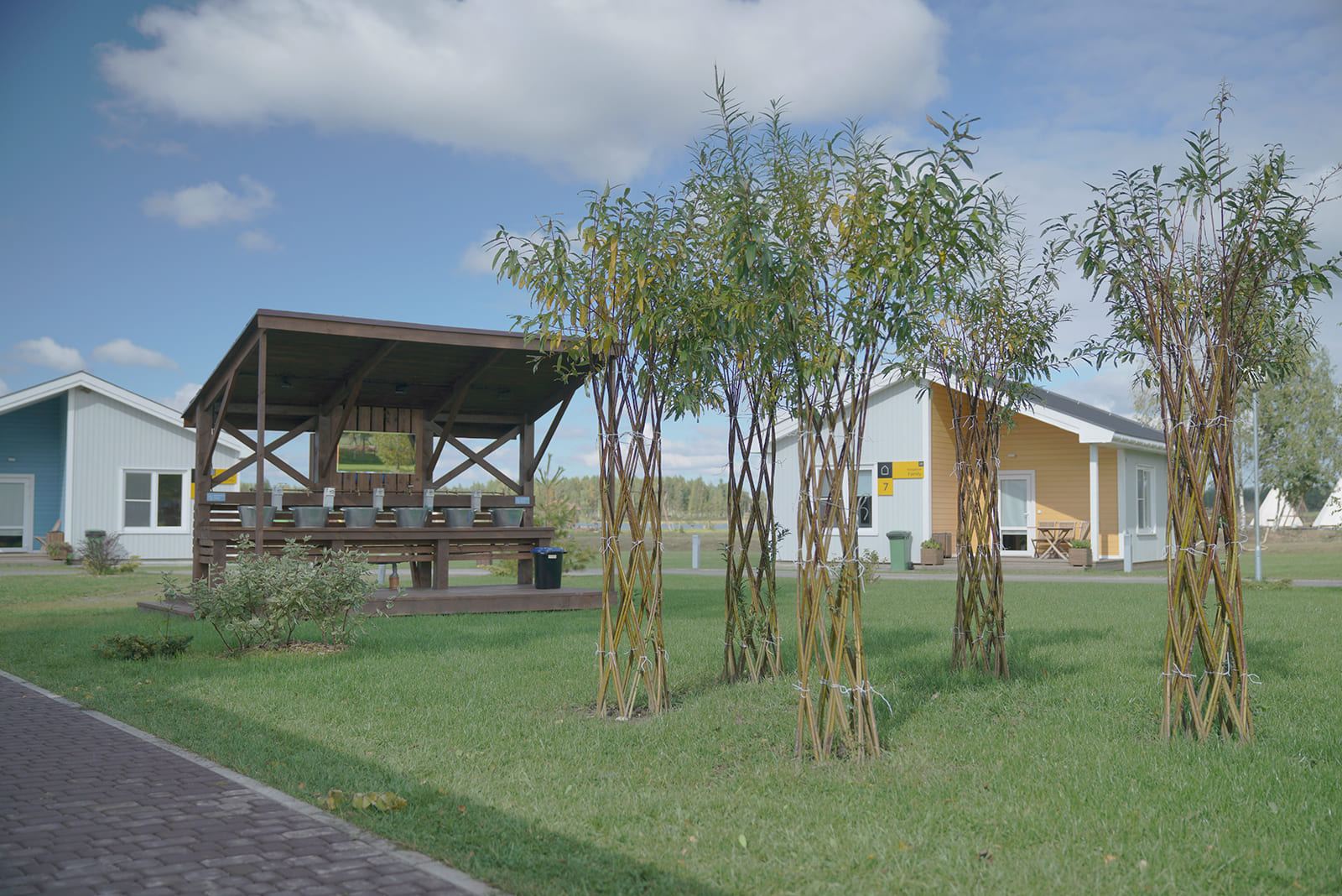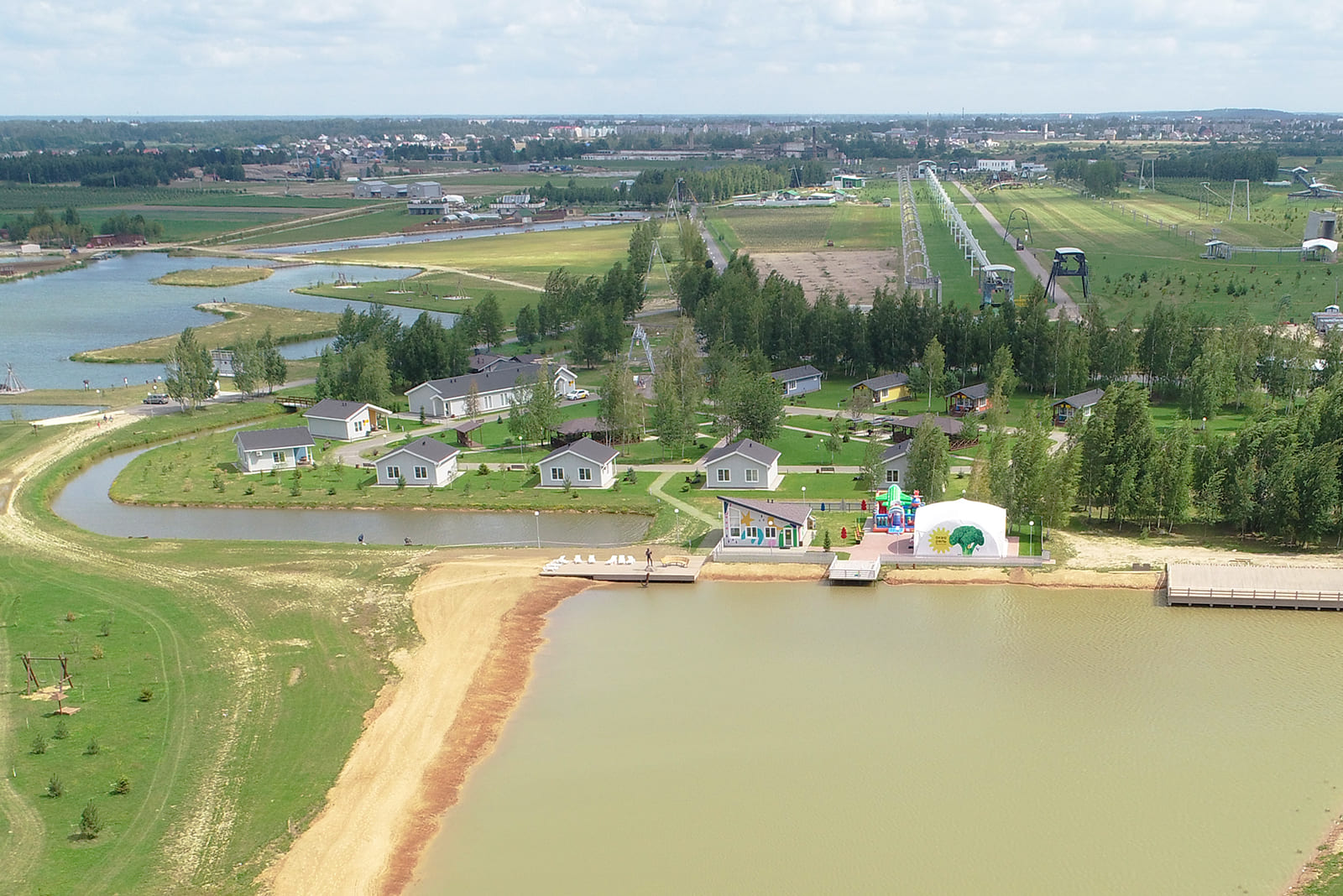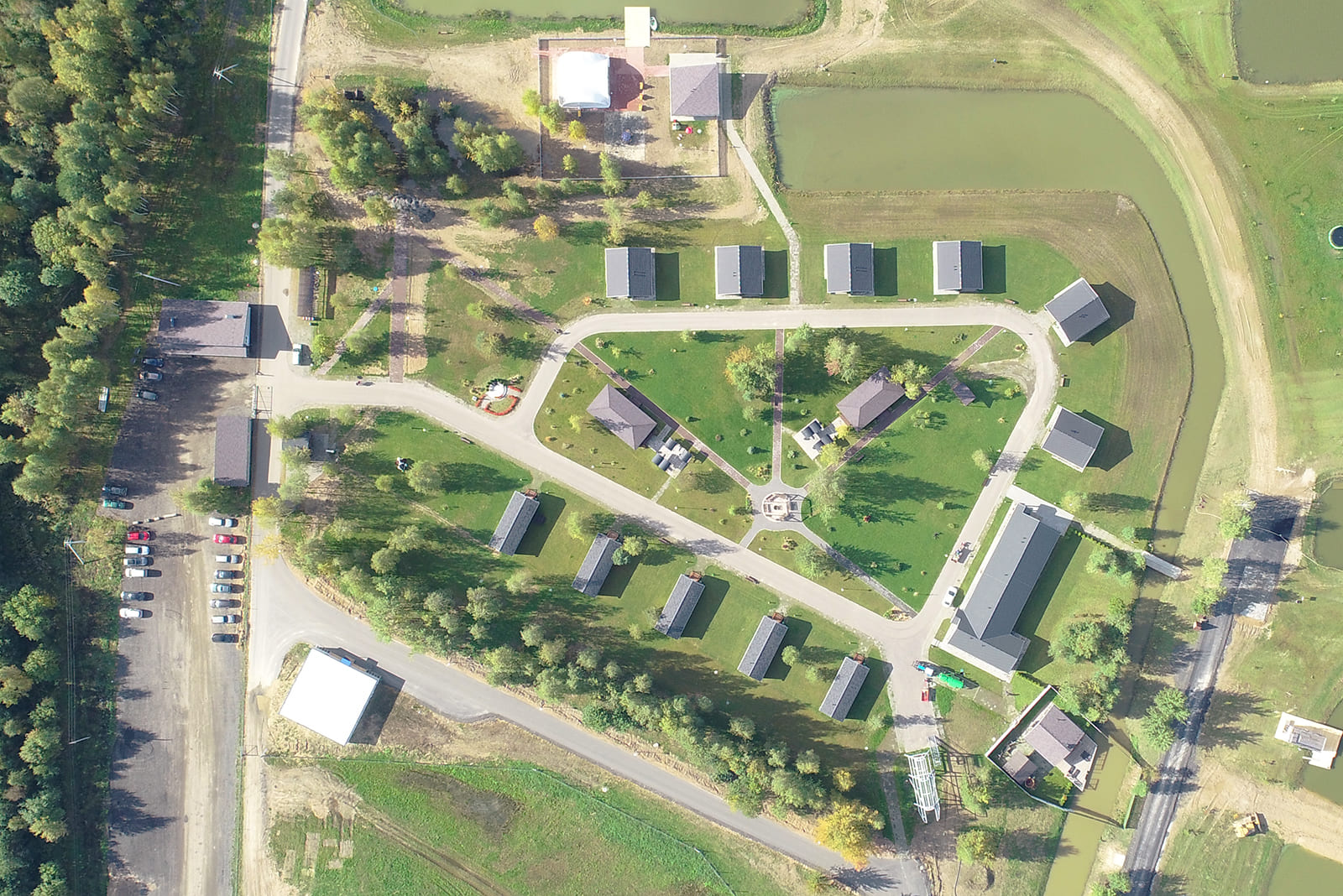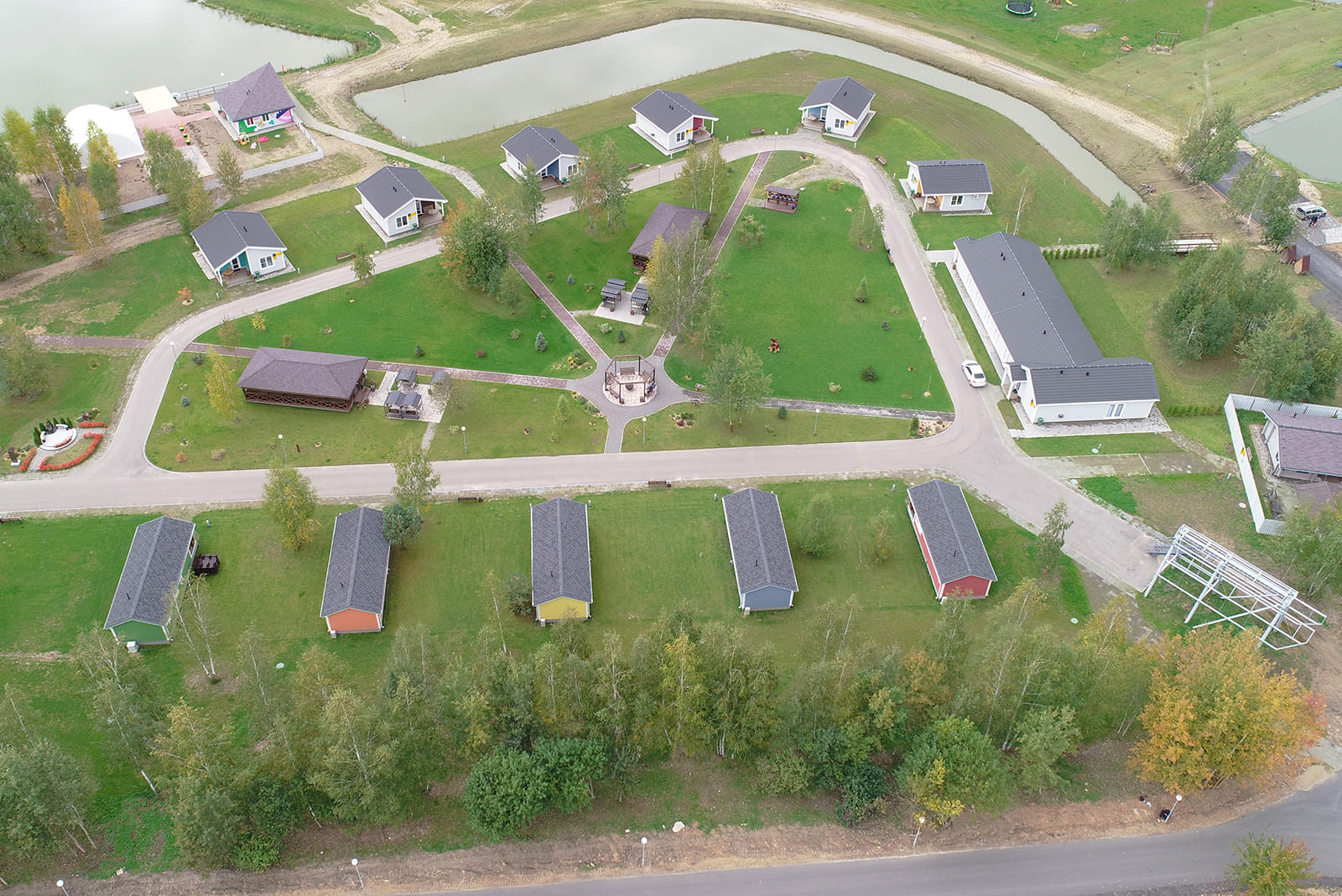 В деревне расположены Lake Hotel, 5 Bungalow Standard Plus и 5 Bungalow Family. Между ними находятся открытые зелёные площадки, установлены мангальная зона с двумя большими беседками и подвесные скамейки с очагом. Рядом с деревней имеется детский клуб, 2 бани, бовер, комфортабельный санузел.