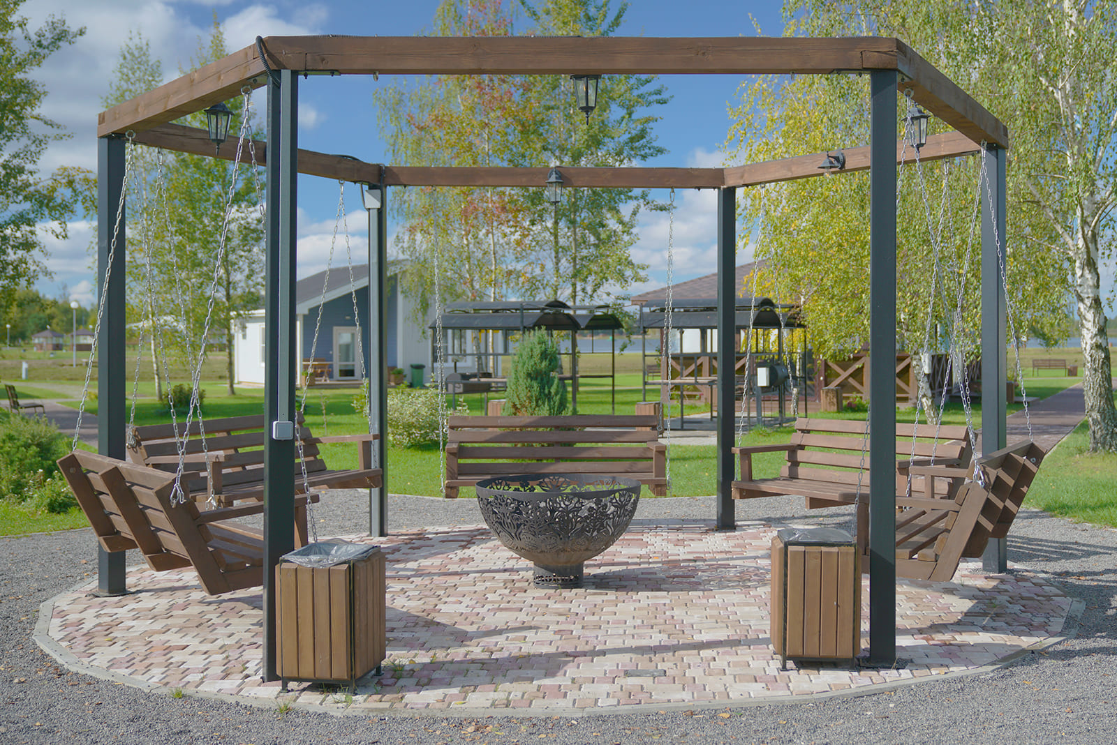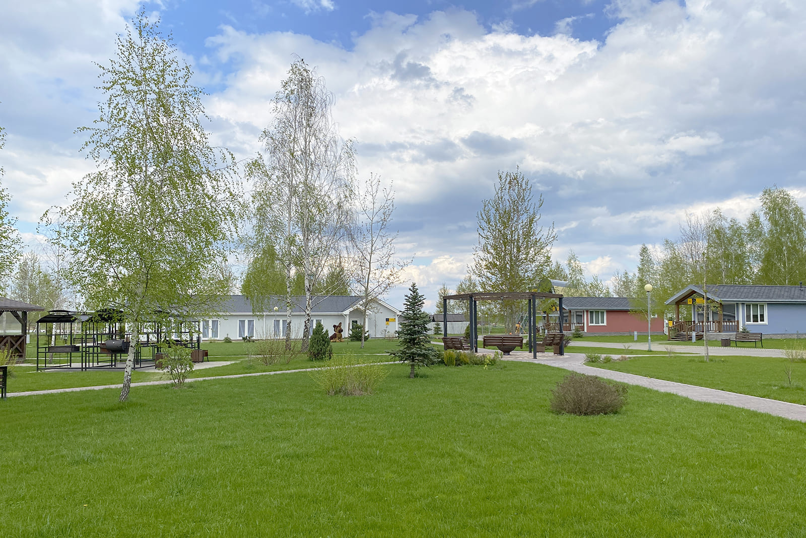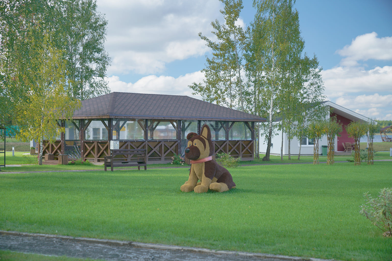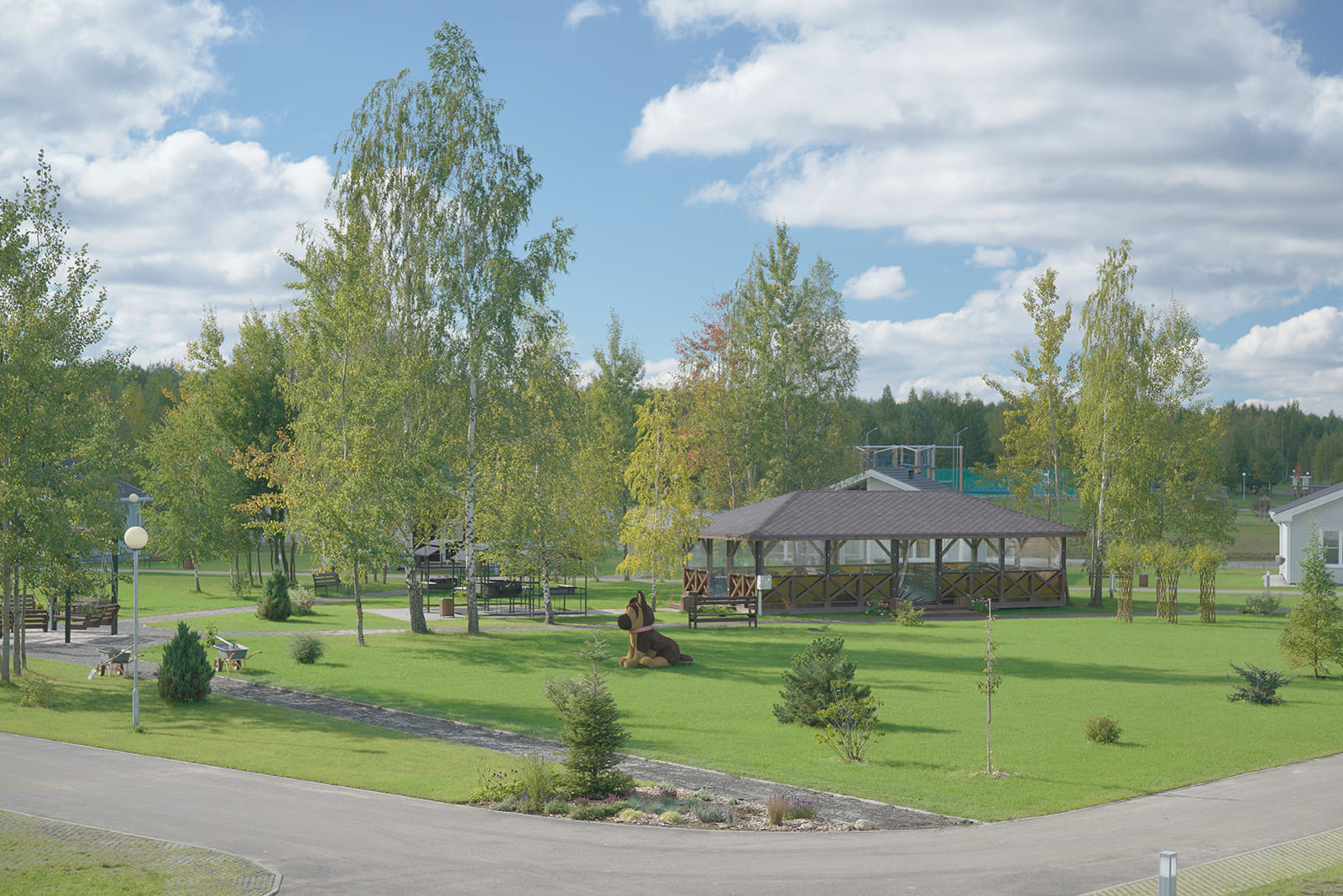 В деревне расположены Lake Hotel, 5 Bungalow Standard Plus и 5 Bungalow Family. Между ними находятся открытые зелёные площадки, установлены мангальная зона с двумя большими беседками и подвесные скамейки с очагом. Рядом с деревней имеется детский клуб, 2 бани, бовер, комфортабельный санузел.