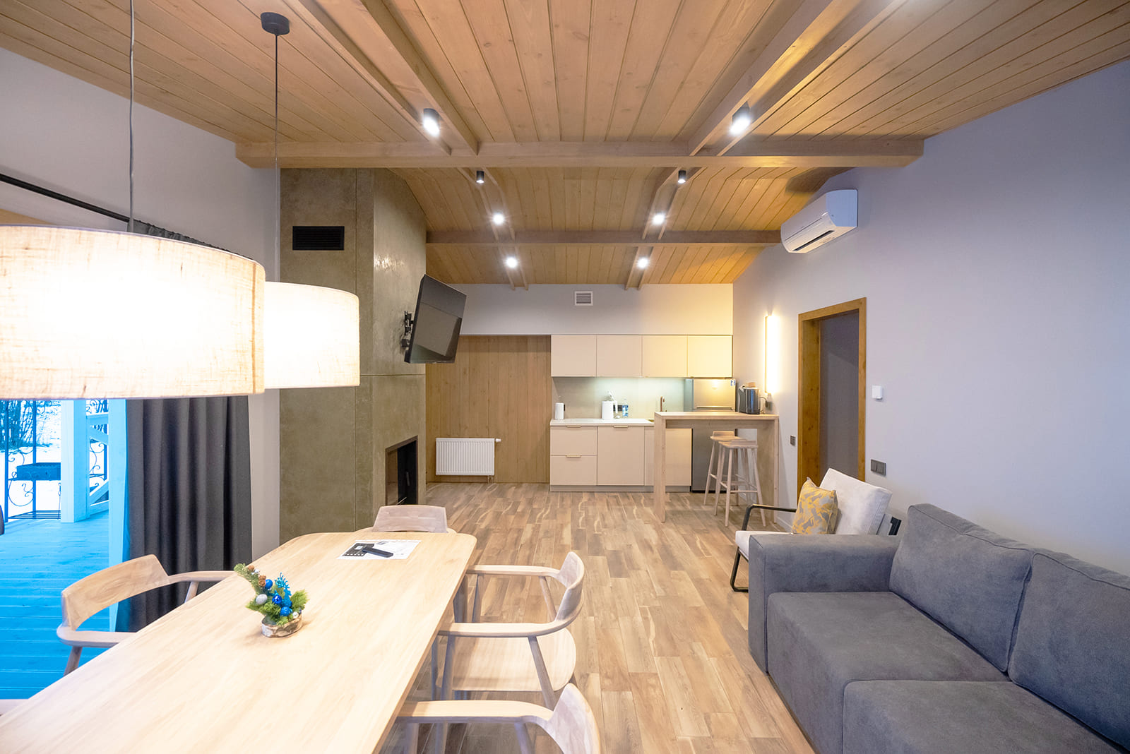 Более вместительные и комфортабельные, изготовленные из натуральных материалов, они идеально подойдут тем, кто хочет обновить домашнюю обстановку и полноценно расслабиться в комфортной и продуманной обстановке. Нейтральный декор этих шале не раздражает и не приедается, а простота, эстетичность и традиционный скандинавский рационализм делают отдых в Skandi Comfort Plus настоящим, спокойным и безмятежным.