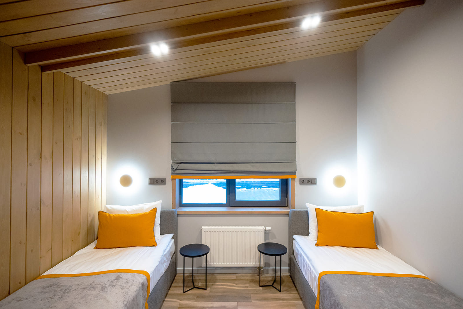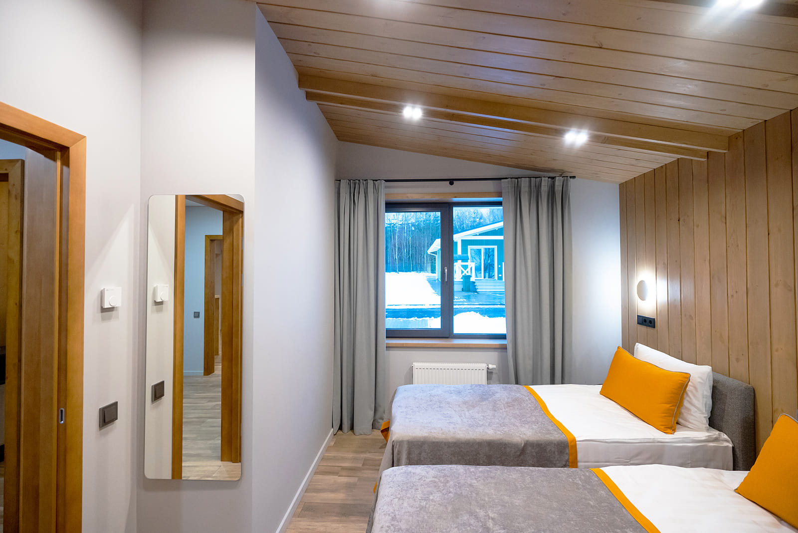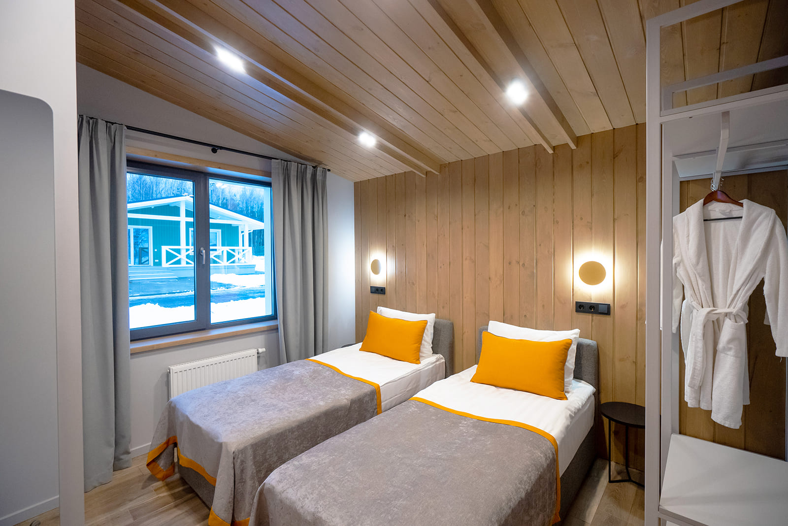 2 спальни с односпальными кроватями, с возможностью объединения в двуспальные